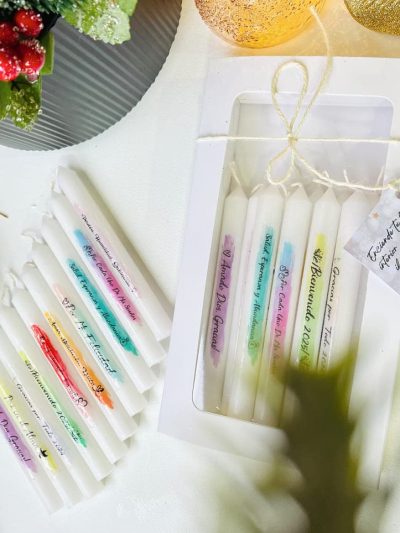 Velas personalizadas, ideales para prender en la noche de Velitas del 7 y 8 de diciembre.