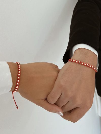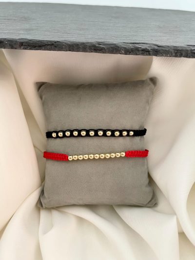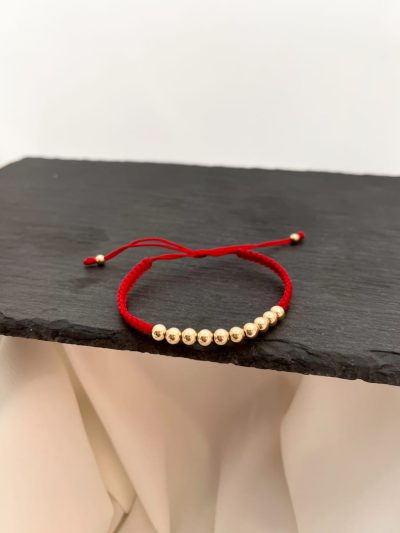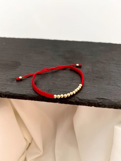 PULSERA ROJA TEJIDA BALIN LISO NO.4 Y BALIN LISO NO.5