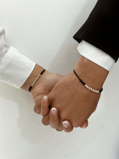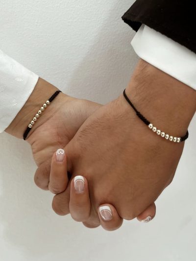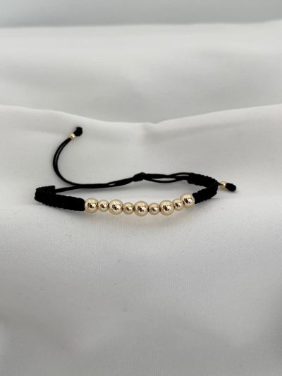 PULSERA NEGRA TEJIDA BALIN LISO NO.4 Y BALIN LISO NO.5