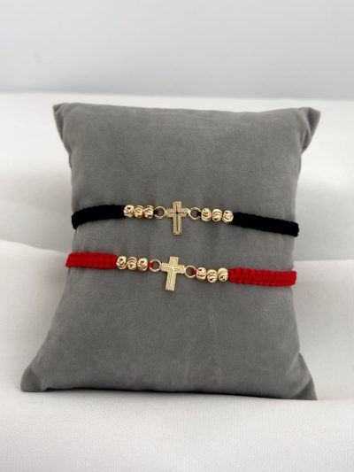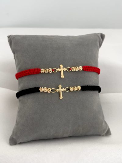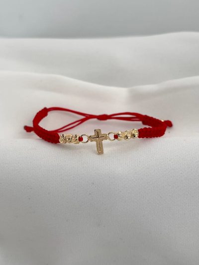 PULSERA ROJA TEJIDA CRUZ GRIEGA BALIN DIAMANTADO NO.4Son Ajustables.