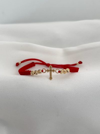 PULSERA ROJA TEJIDA CRUZ TRINIDAD 12MM BALIN DIAMANTADO
