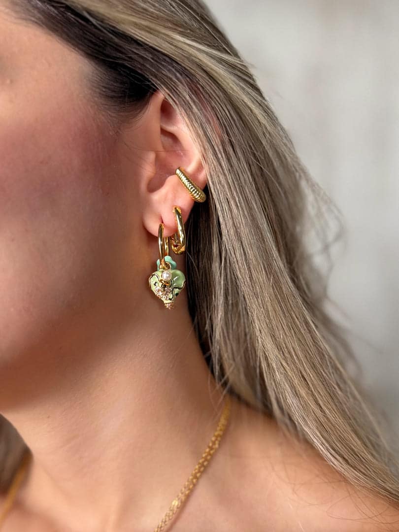 ARETE 3 EN 1 CORAZON VERDE FLOR