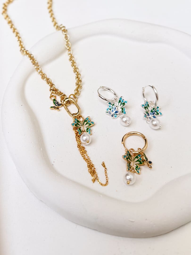 ARETE 3 EN 1 CORAZON VERDE FLOR