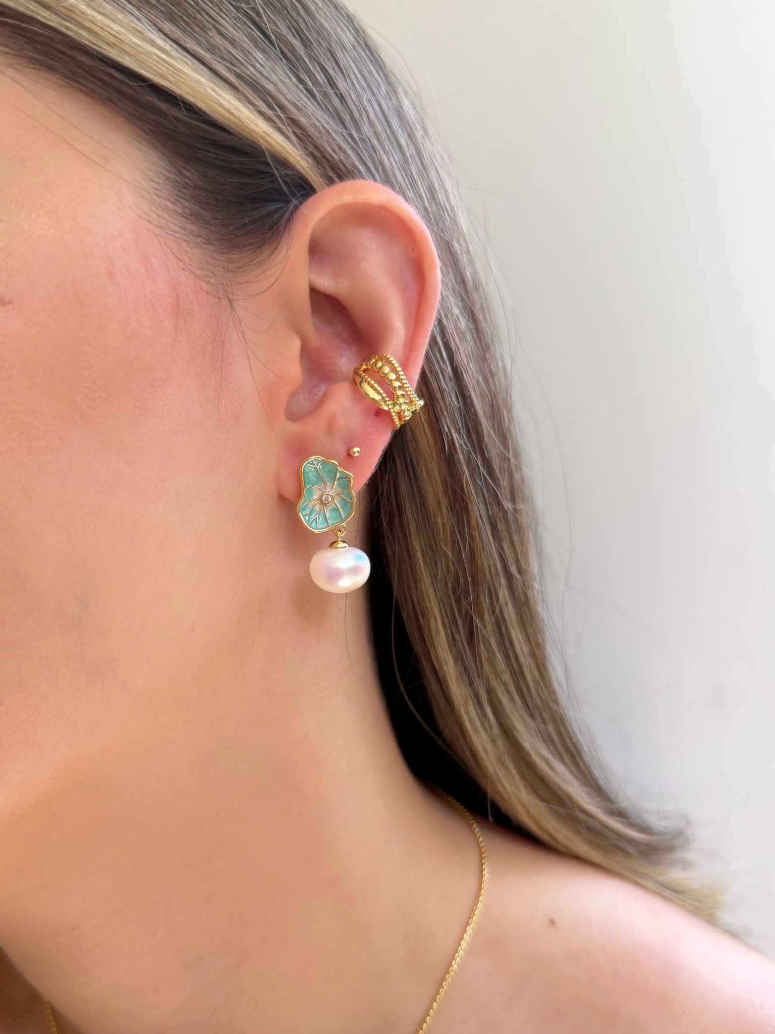 Material: Aretes de concha con perla.