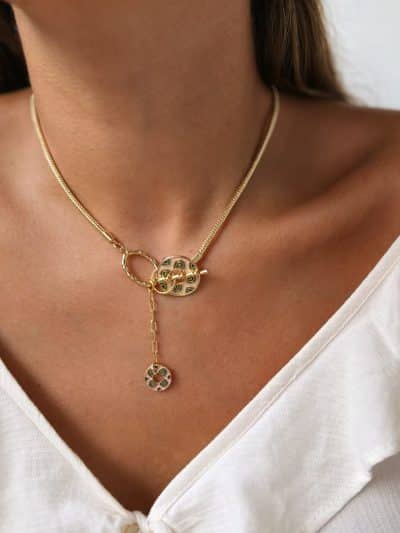 Material: Rodio – (Livianas) Cadena con diseño de mariposa hecho a mano que aportan textura y color.