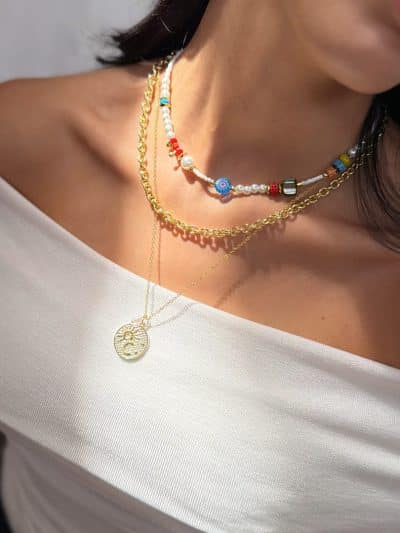 Arma tu set, pulsera y collar. Choker con perlas y murrinas, cadenita doble. Utilizala Sola o en conjunto, nuestras cadenas están hechas para que armes tu layering como más te guste.