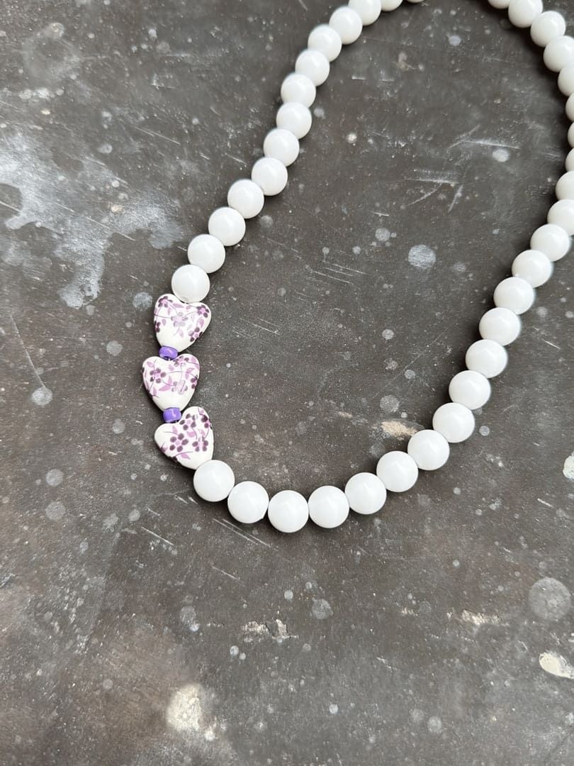 COLLAR MAXI EN CORAZONES LILA FLORALES