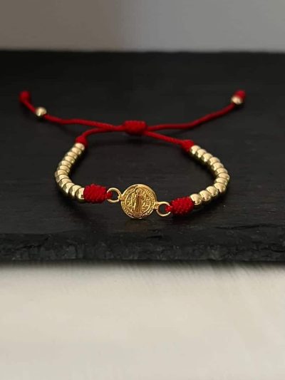 PULSERA HILO ROJO SAN BENITO BALIN 4MM.