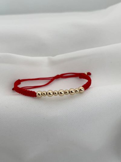PULSERA ROJA TEJIDA BALIN LISO NO.4 Y BALIN LISO NO.5