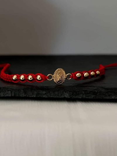 PULSERA TEJIDA ROJA PROTECCIÓN VIRGEN GUADALUPE 10MM BALIN 4MM