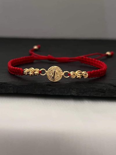 PULSERA TEJIDA ROJA SAN BENITO DIAMANTADA BALIN 5MM.