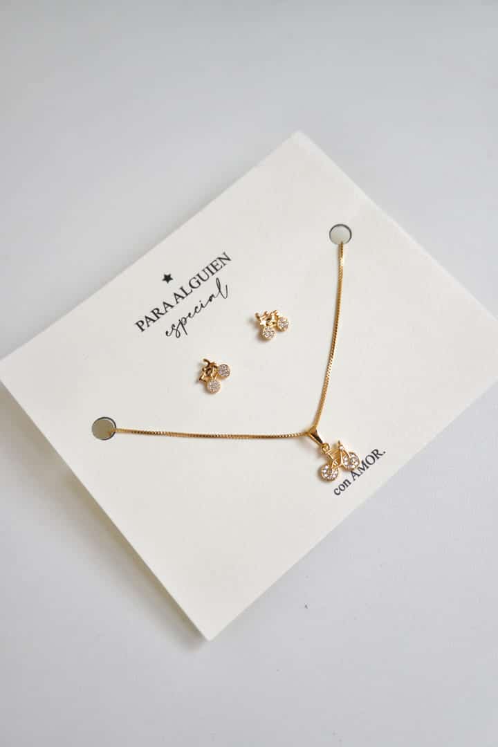 SET CADENA 40 CM BICICLETA ZIRCONES ORO LAMINADO