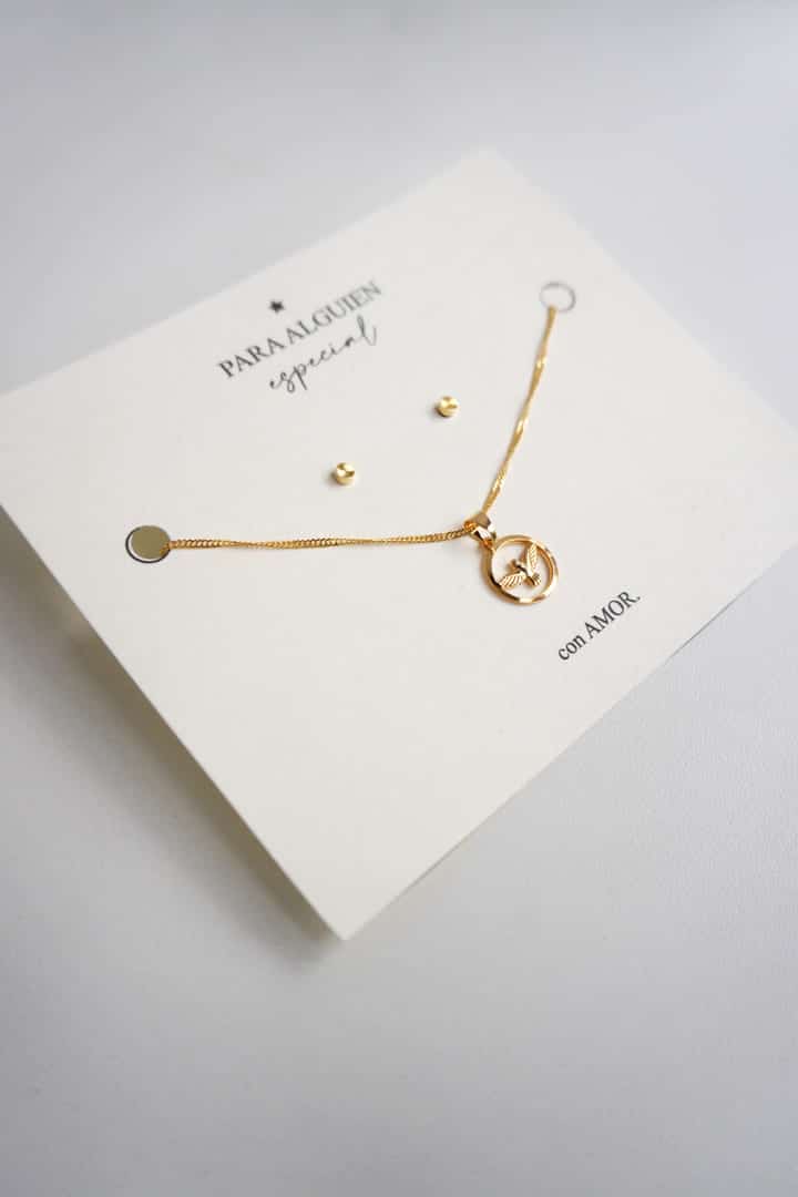 SET CADENA 45 CM ESPIRITU SANTO EN CIRCULO ORO LAMINADO
