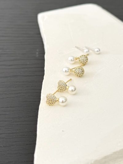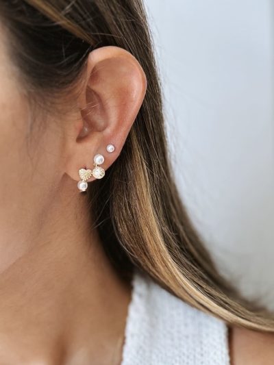 Set en Rodio con corazones acompañado de perla. Combínalo para armar un layering.