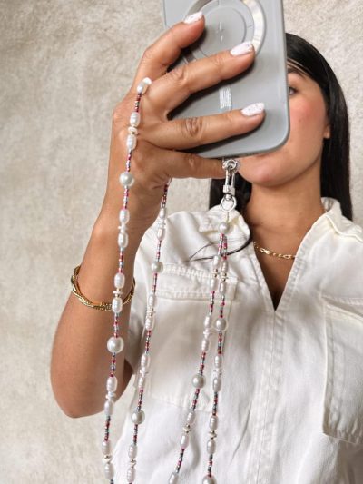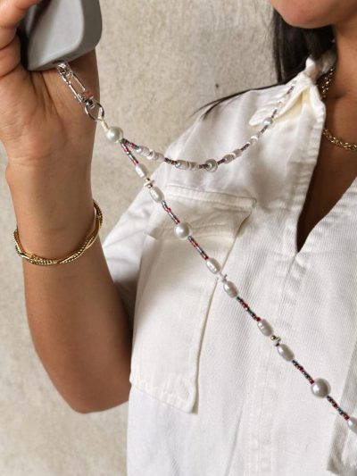 Nuestro strap en perlas incluye un adaptador funcional para llevarlo en tu celular