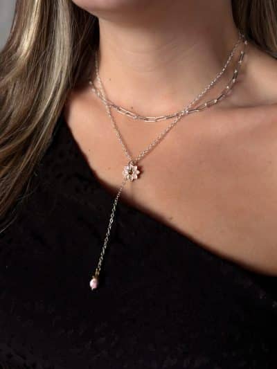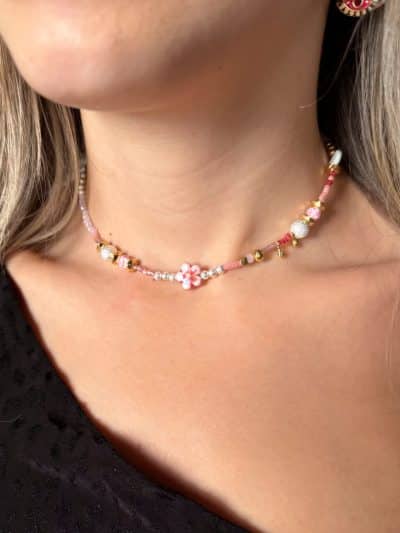 Cadena con diseño FLOR hecho a mano que aportan textura y color.