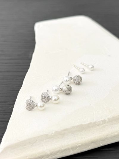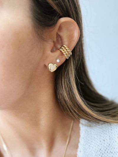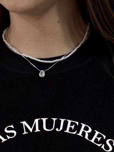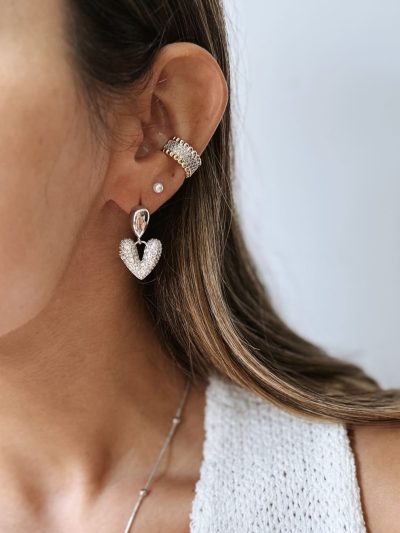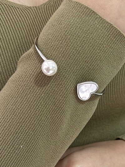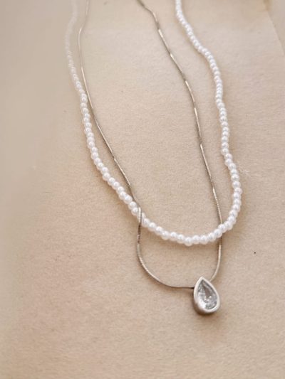 Set en Rodio con corazones acompañado de perla. Combínalo para armar un layering.
