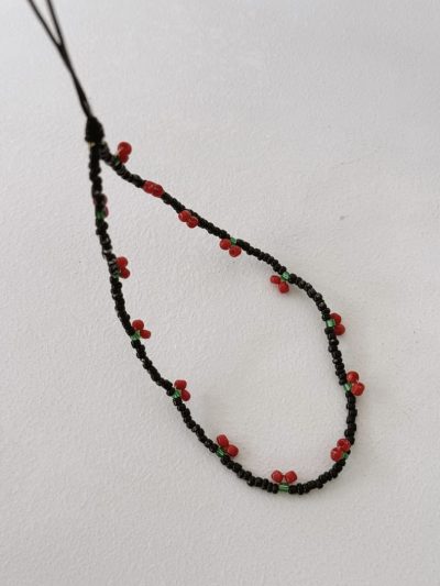 Detalles de con mostacilla, cerezas hechas a mano.- cadena de extension aprox 7cm.