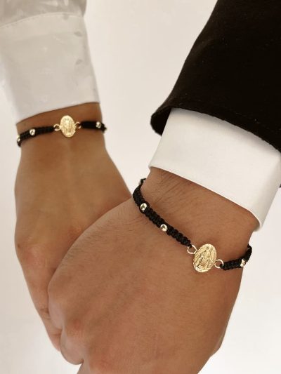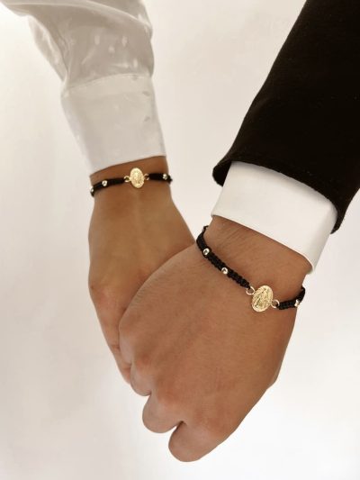 PULSERA TEJIDA NEGRA MILAGROSA TROQUELADA 12MM NUDO PLANO BALIN 4MM