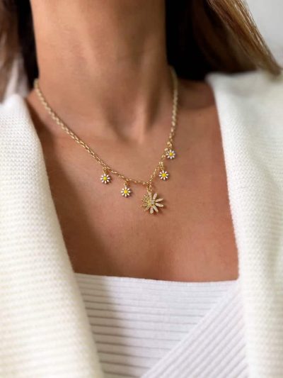collar perlas con dije de margaritas. Utilizala Sola o en conjunto, nuestras cadenas están hechas para que armes tu layering como más te guste.